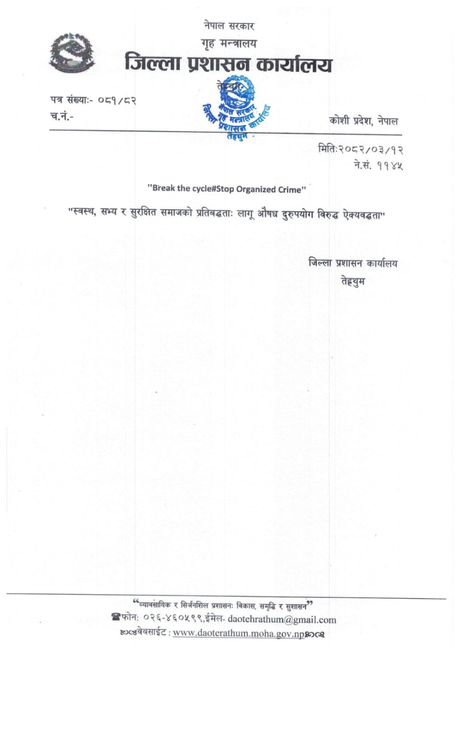 © सर्वाधिकार सुरक्षित जिल्ला प्रशासन कार्यालय, तेह्रथुम .
