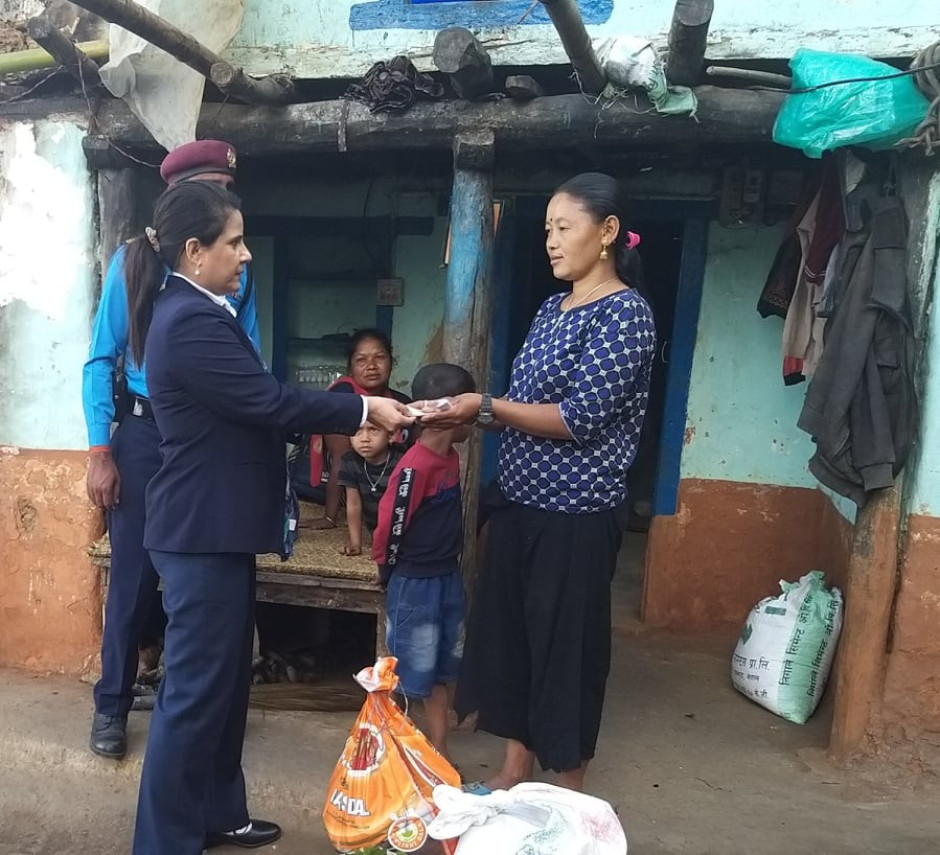 तस्बिर : फेदाप गा.पा. वडा नं. १ बस्नुहुने फूलमाया लावतीको घर आगलागि भई क्षति भएको हुँदा मिति २०७६ असोज ५ गते प्र.जि.अ. ज्यूबाट निजको घरमा गई राहत तथा सामग्री वितरण