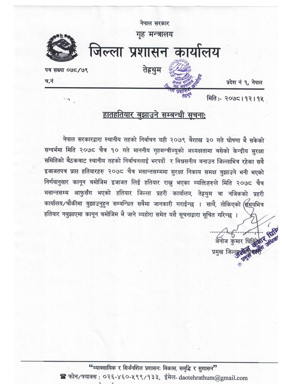 तस्बिर : हातहतियार बुझाउने सम्बन्धी सूचना ।