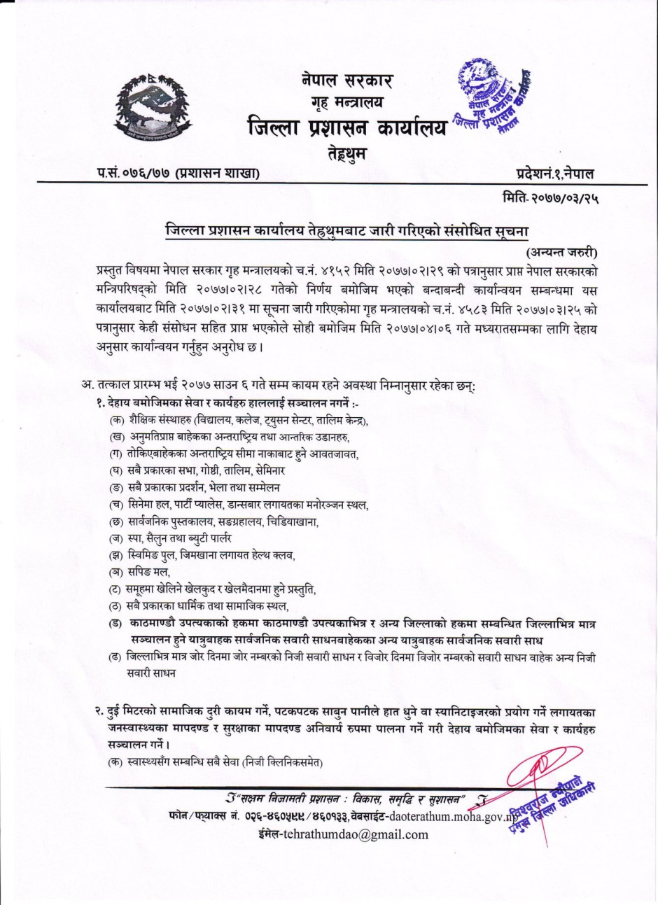 जिल्ला प्रशासन कार्यालय तेह्रथुमबाट जारी गरिएको संसोधित सूचना ।