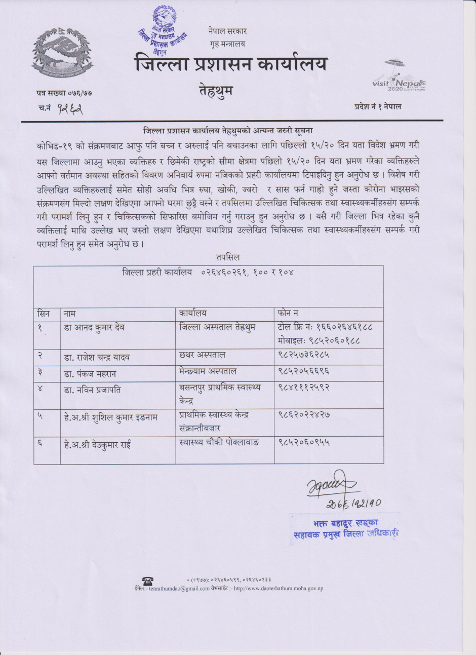तस्बिर : जिल्ला प्रशासन कार्यालय, तेह्रथुमको अत्यन्त जरुरी सूचना ।