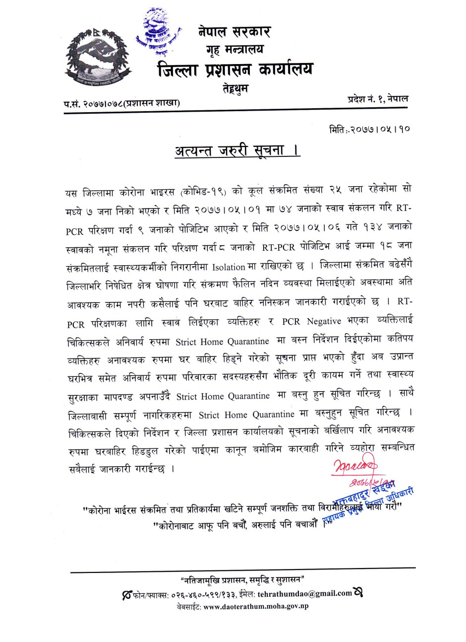 तस्बिर : जिल्ला प्रशासन कार्यालय, तेह्रथुमको अत्यन्त जरुरी सूचना ।