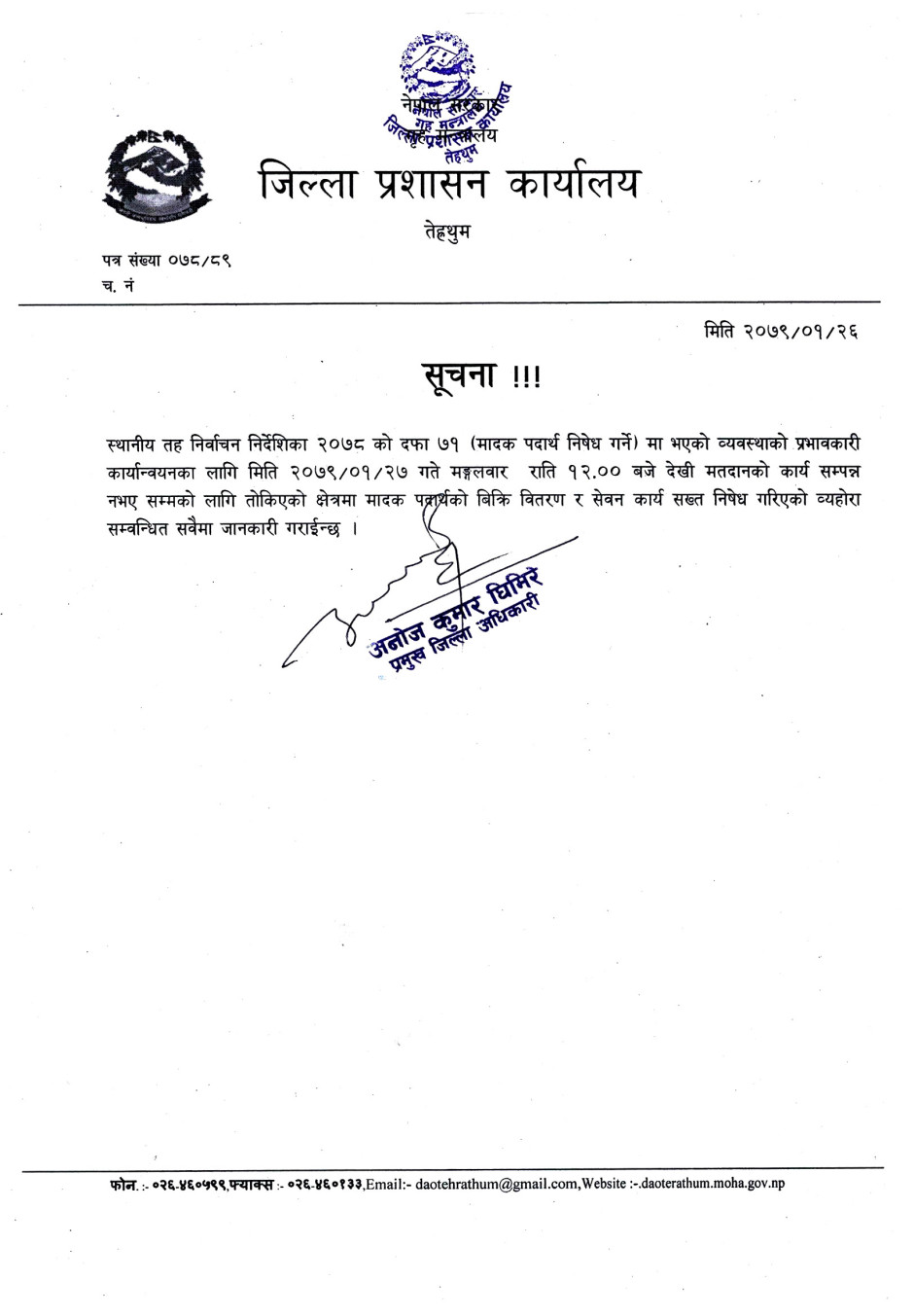 तस्बिर : जिल्ला प्रशासन कार्यालय, तेह्रथुमको जरुरी सूचना ।