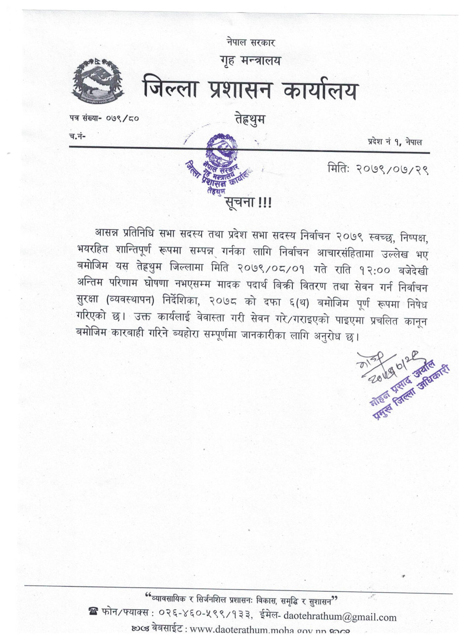 © सर्वाधिकार सुरक्षित जिल्ला प्रशासन कार्यालय, तेह्रथुम .