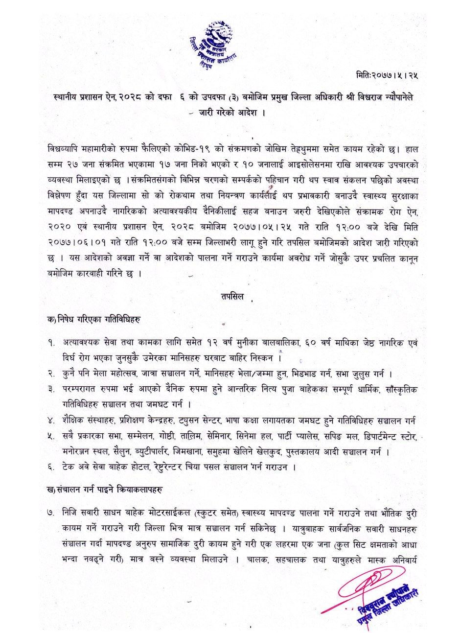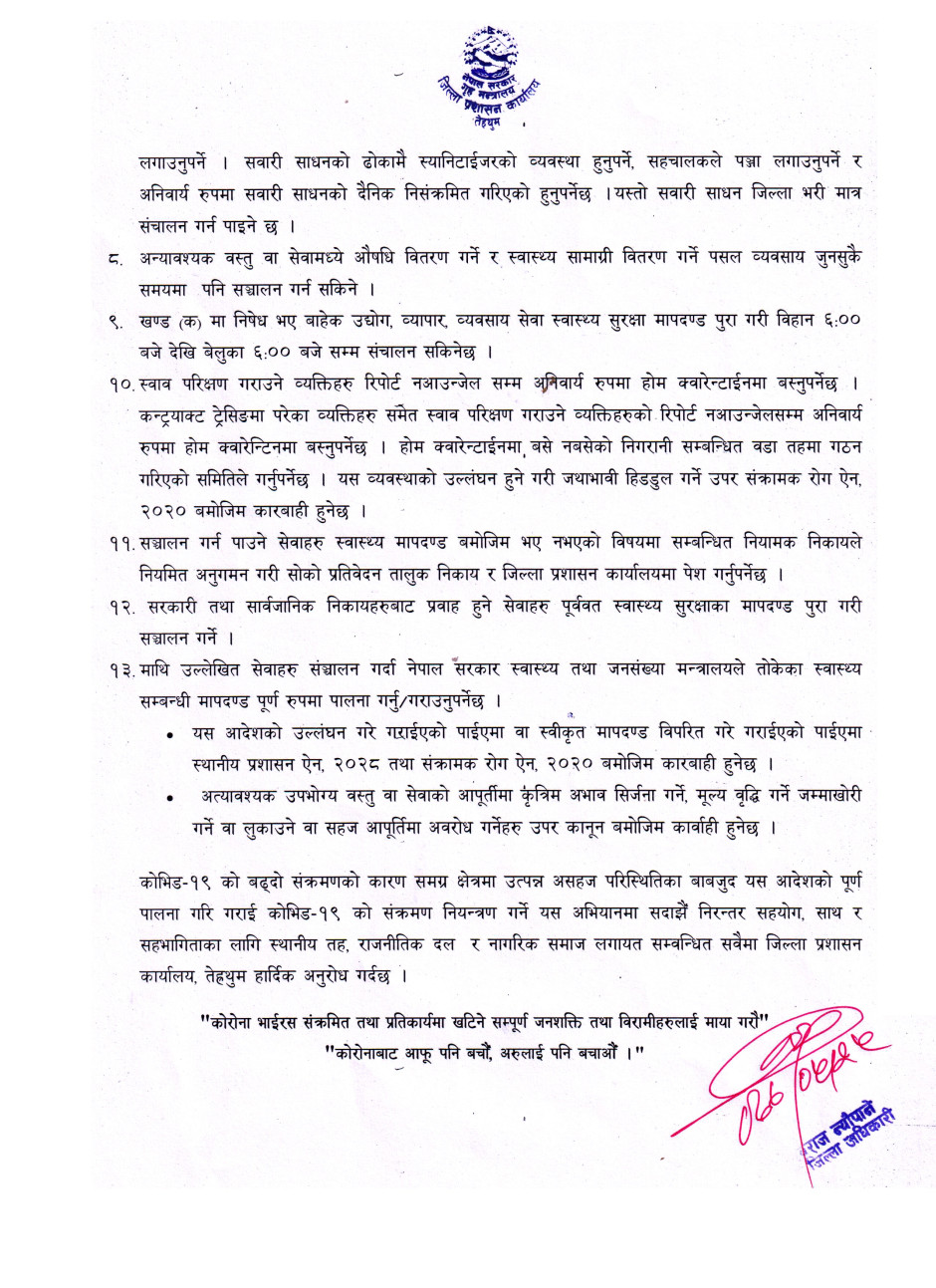 तस्बिर : जिल्ला प्रशासन कार्यालय, तेह्रथुमका प्रमुख जिल्ला अधिकारीबाट जारि आदेश ।