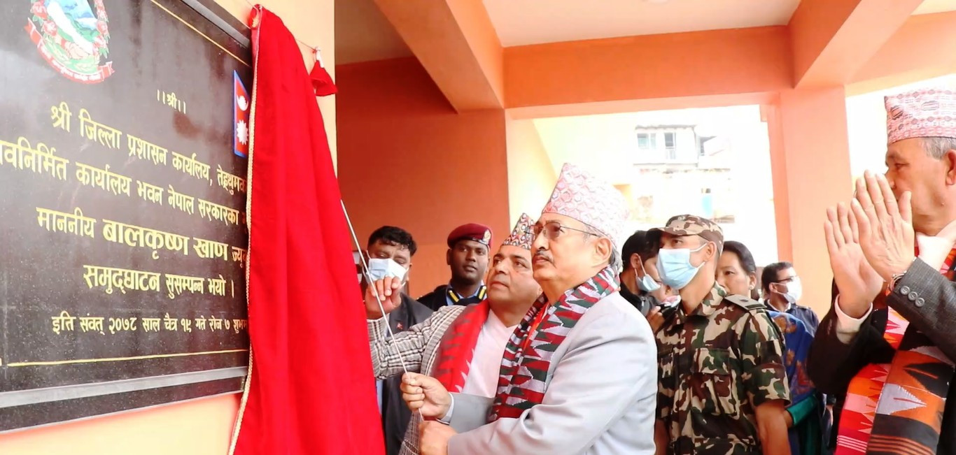 माननीय कार्यवाहक प्रधानमन्त्रि तथा गृह मन्त्री बालकृष्ण खाणज्यूबाट जिल्ला प्रशासन कार्यालय तेह्रथुमको नवनिर्मित कार्यालय भवन उद्घाटनको लागि शिलान्यासको कार्यक्रम: