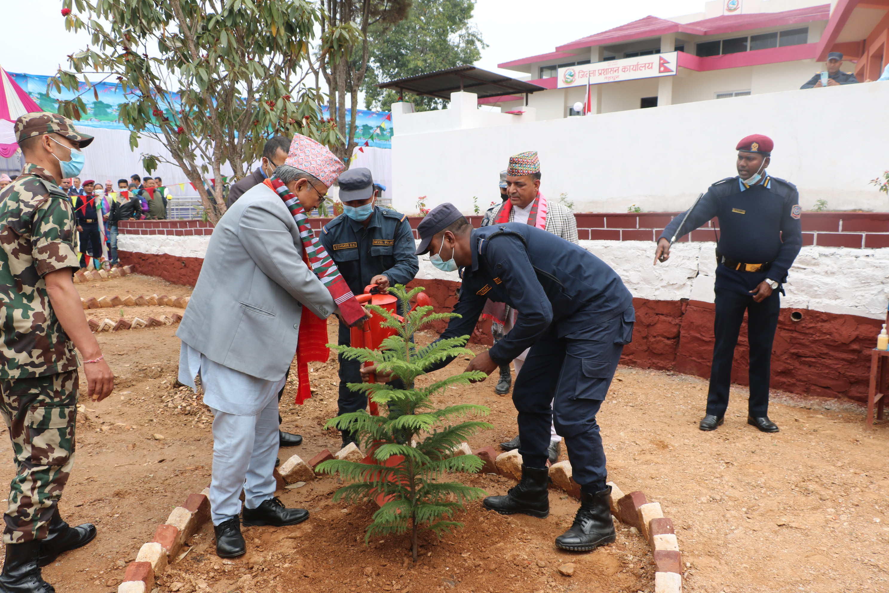 माननीय कार्यवाहक प्रधानमन्त्रि तथा गृह मन्त्री बालकृष्ण खाणज्यूबाट जिल्ला प्रशासन कार्यालयको परिसरमा वृक्षारोपण कार्यक्रम:-