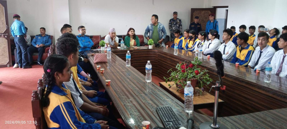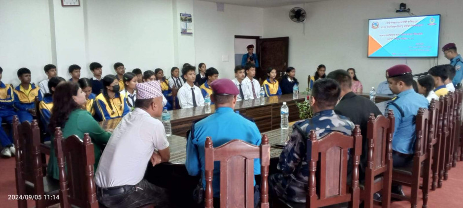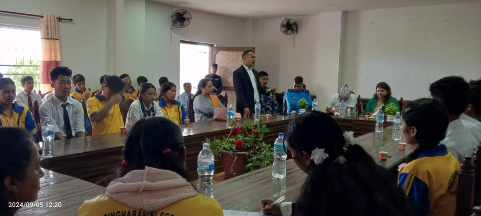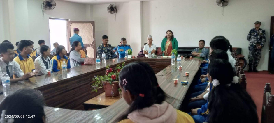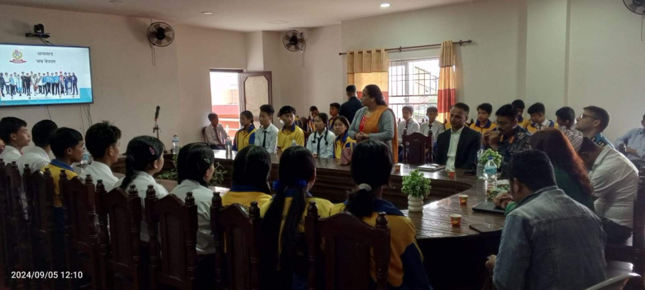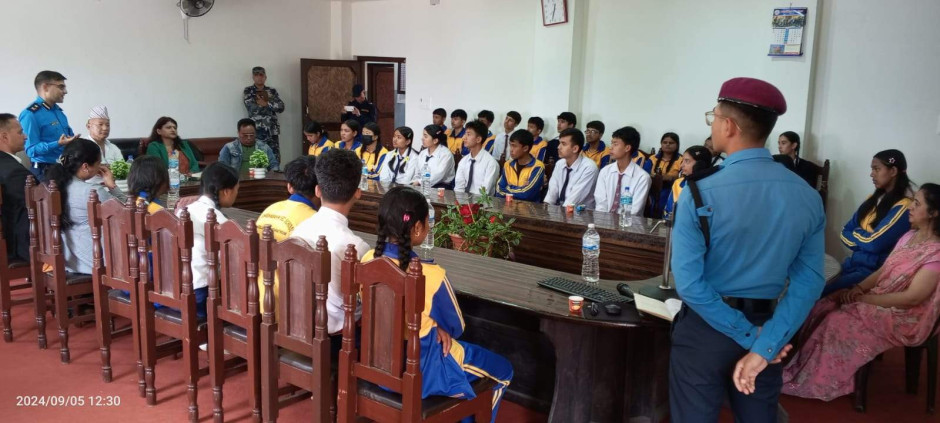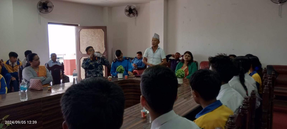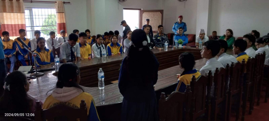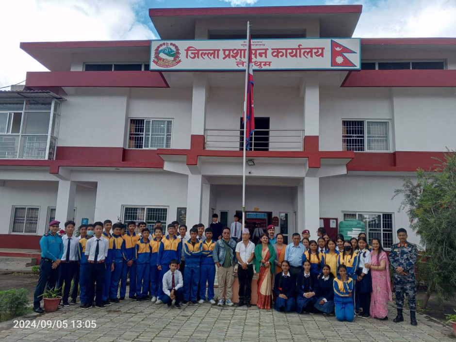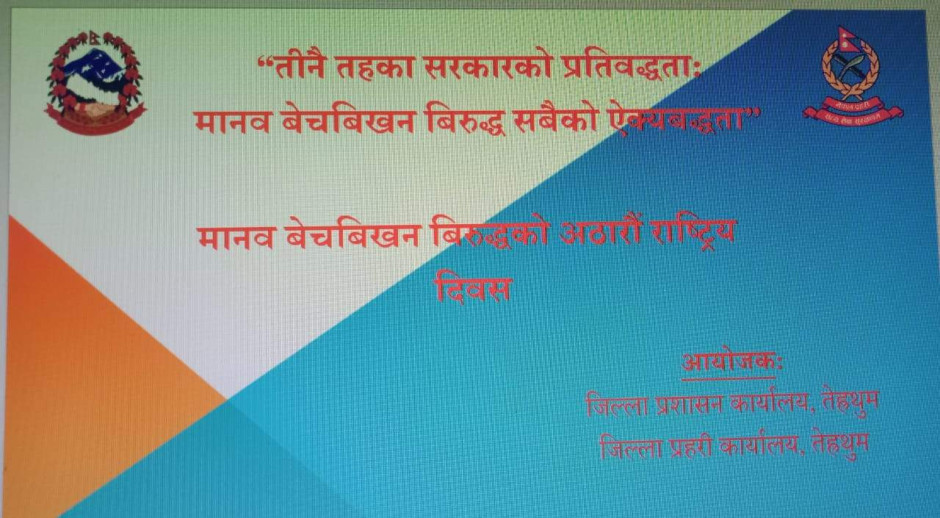 ३ वटै सरकारको प्रतिवद्धता: मानव बेचविखन विरुद्ध सबैको एक्यवद्धता नाराका साथ आज (२०८१।५।२०) जिल्ला प्रशासन कार्यालय र जिल्ला प्रहरी कार्यालयको संयुक्त आयोजजनामा जिल्ला प्रशासन कार्यालयमा मानव बेचविखन विरुद्धको राष्ट्रिय दिवस सचेनामूलक अन्तरक्रिया कार्यक्रम सन्चालन गरी मनाइयो ।कार्यक्रममा विधालयका करिव ४५ जना भाइबहिनी सहित करिव ६५ जनाको सहभागिता रहेको ।