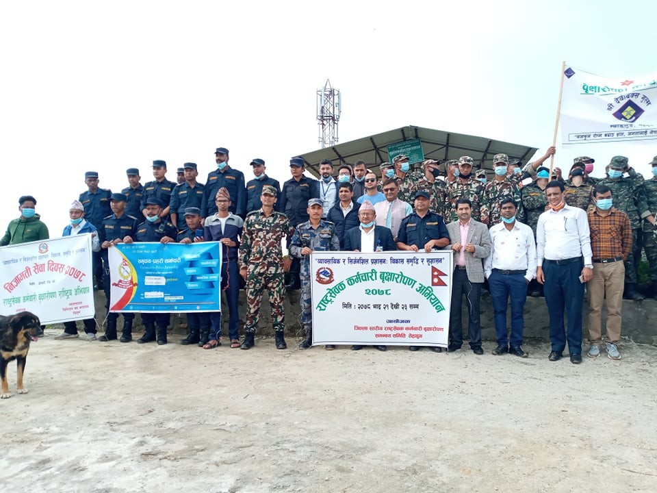 मिति २०७८।०५।२१ गते देखि २३ गते सम्म निजामती दिवसको उपलक्ष्यमा जिल्ला प्रशासन कार्यालय, तेह्रथुमको संयोजकत्वमा भएको वृक्षारोपण कार्यक्रमका केही झलकहरु: