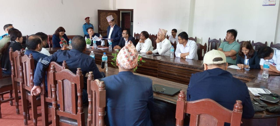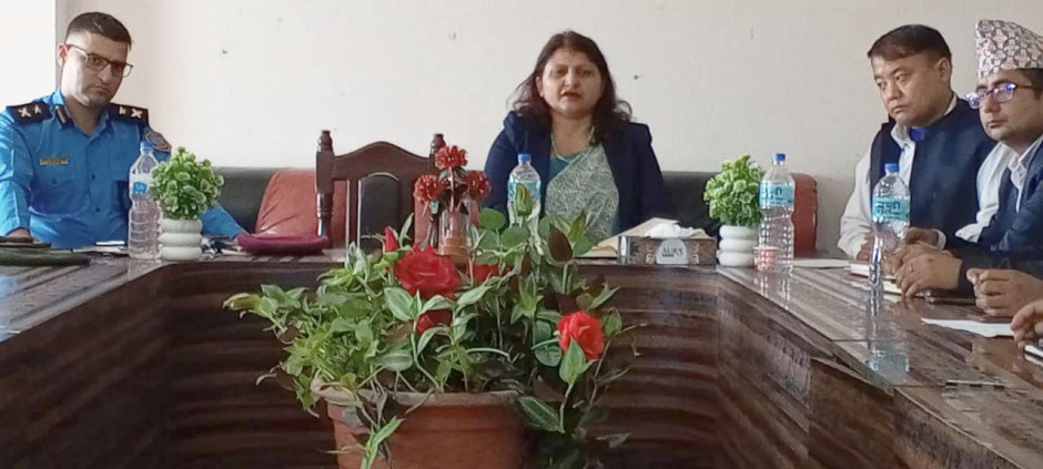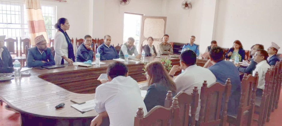 २०८१।४।६ मा कार्यालय प्रमुखहरुको नियमित मासिक बैठक प्र. जि. अ. श्री मीना अर्यालज्यूको अध्यक्षतामा सम्पन्न । जसमा २२ वटा कार्यालयको आ. व. २०८०।८१ को वार्षक कार्य प्रगति समीक्षा (अधिकांशको पावर पोइन्ट प्रस्तुति) भयो । समग्रमा जिल्लाको वित्तीय र भौतिक प्रगति राम्रो रहेको छ ।