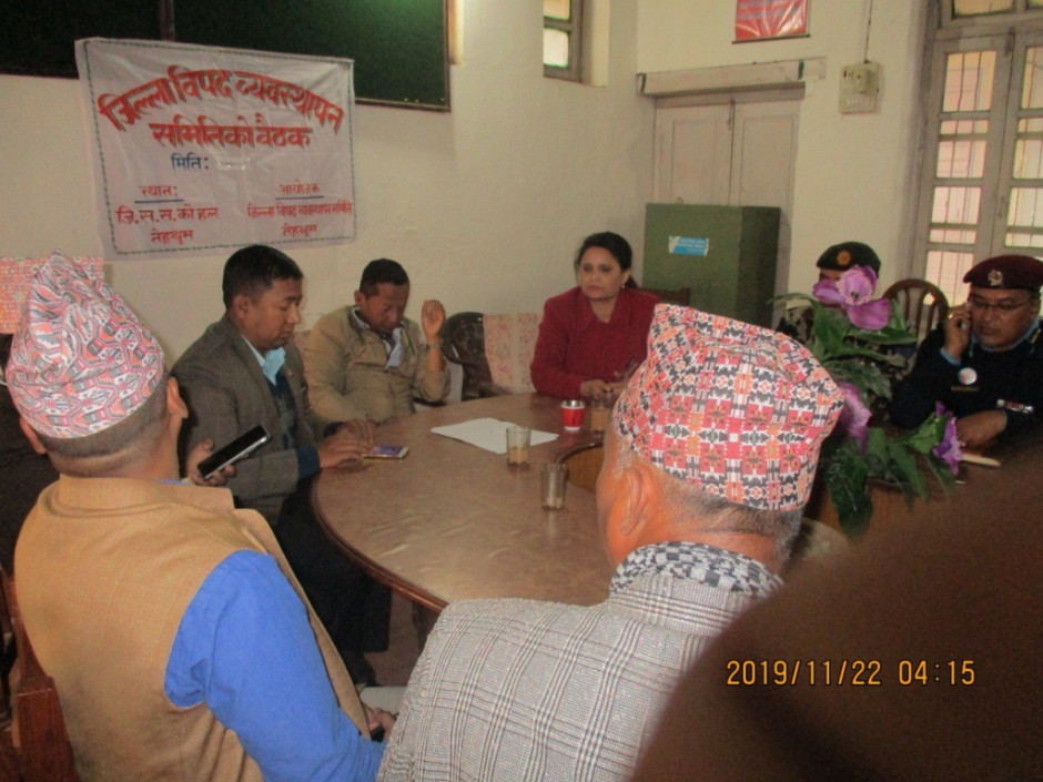 मिति २०७६ मंसिर ६ गते जिल्ला प्रशासन कार्यालय तेह्रथुममा बसेको जिल्ला विपद् व्यवस्थापन समितिको बैठकको केही तस्बीरहरु: