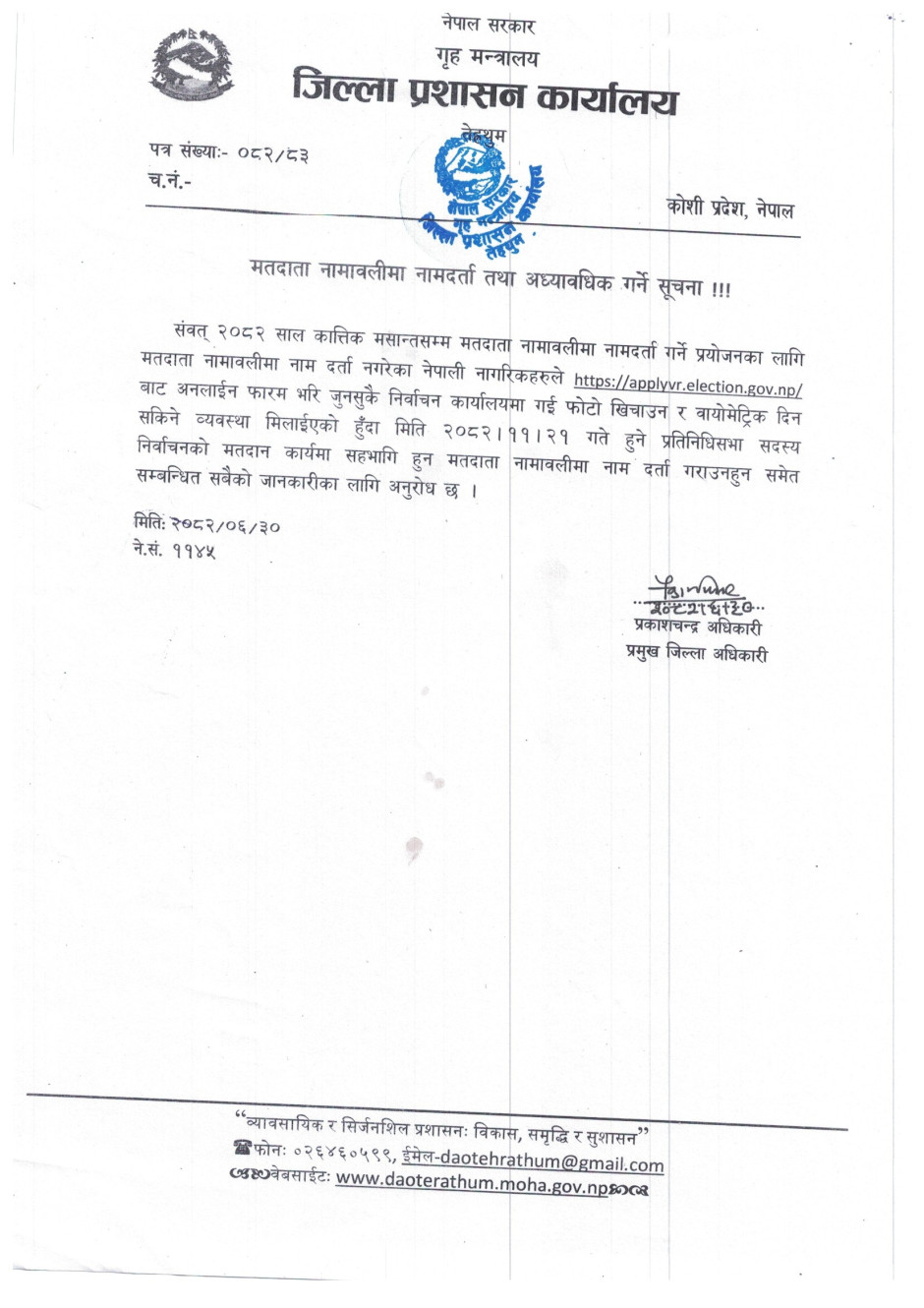 मतदाता नामावलीमा नामदर्ता तथा अध्यावधिक गर्ने सूचना !!!