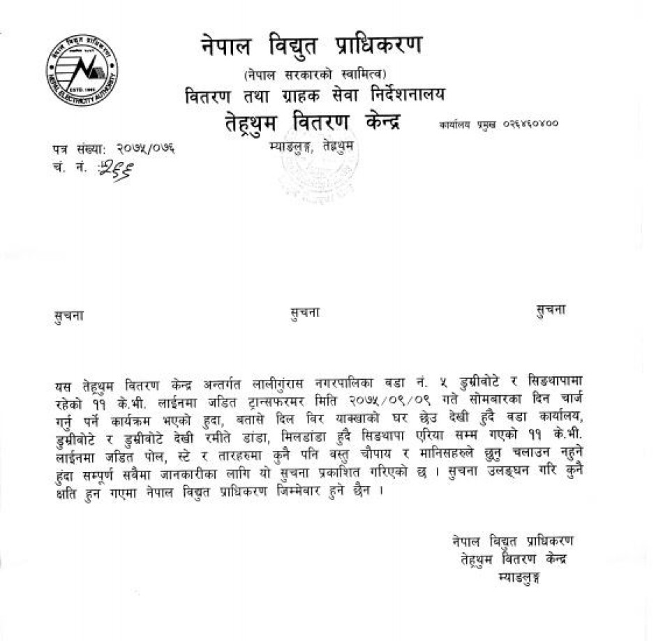 नेपाल विधुत प्राधिकरणको अत्यन्त जरुरी सुचना