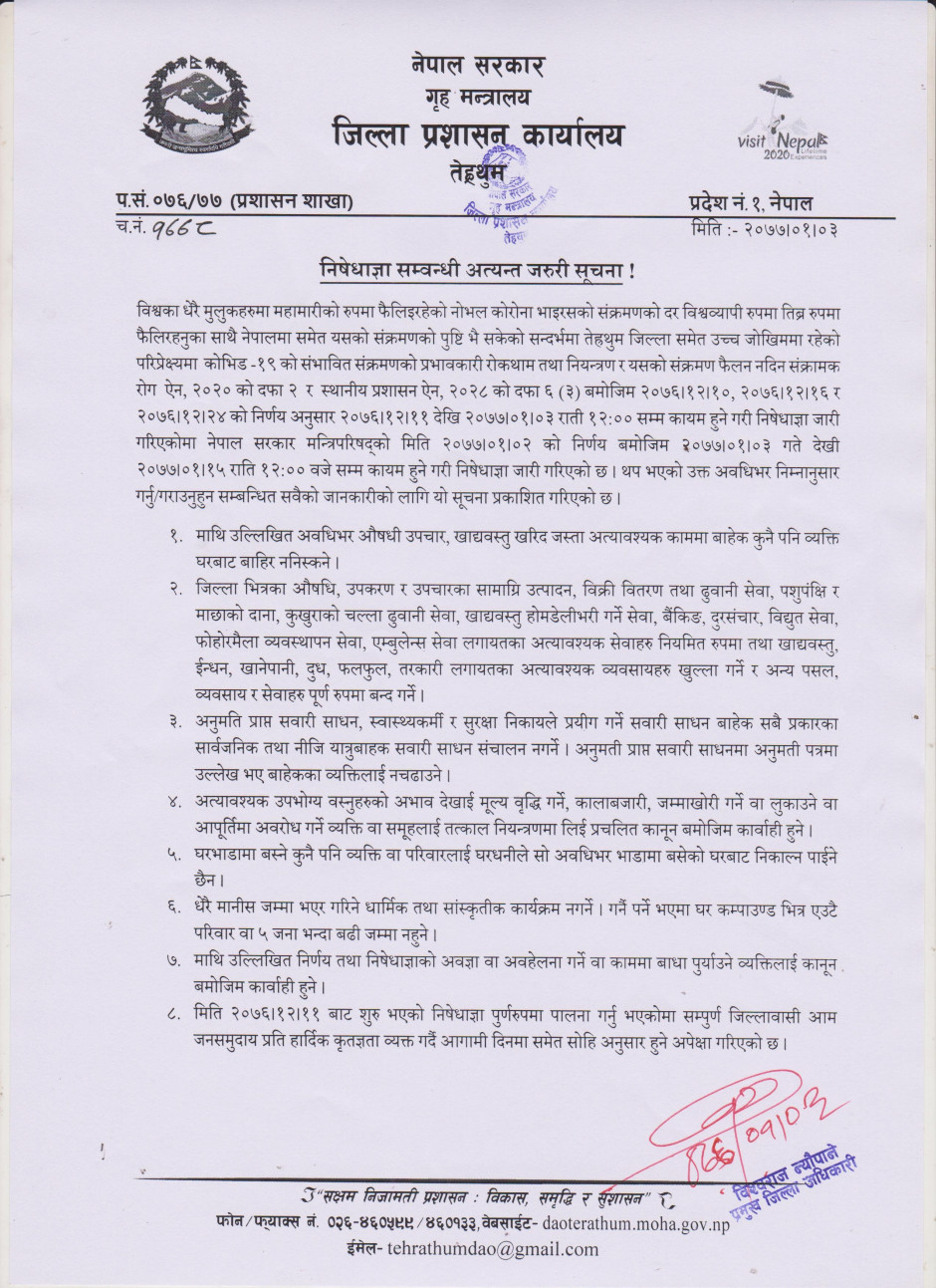 © सर्वाधिकार सुरक्षित जिल्ला प्रशासन कार्यालय, तेह्रथुम .