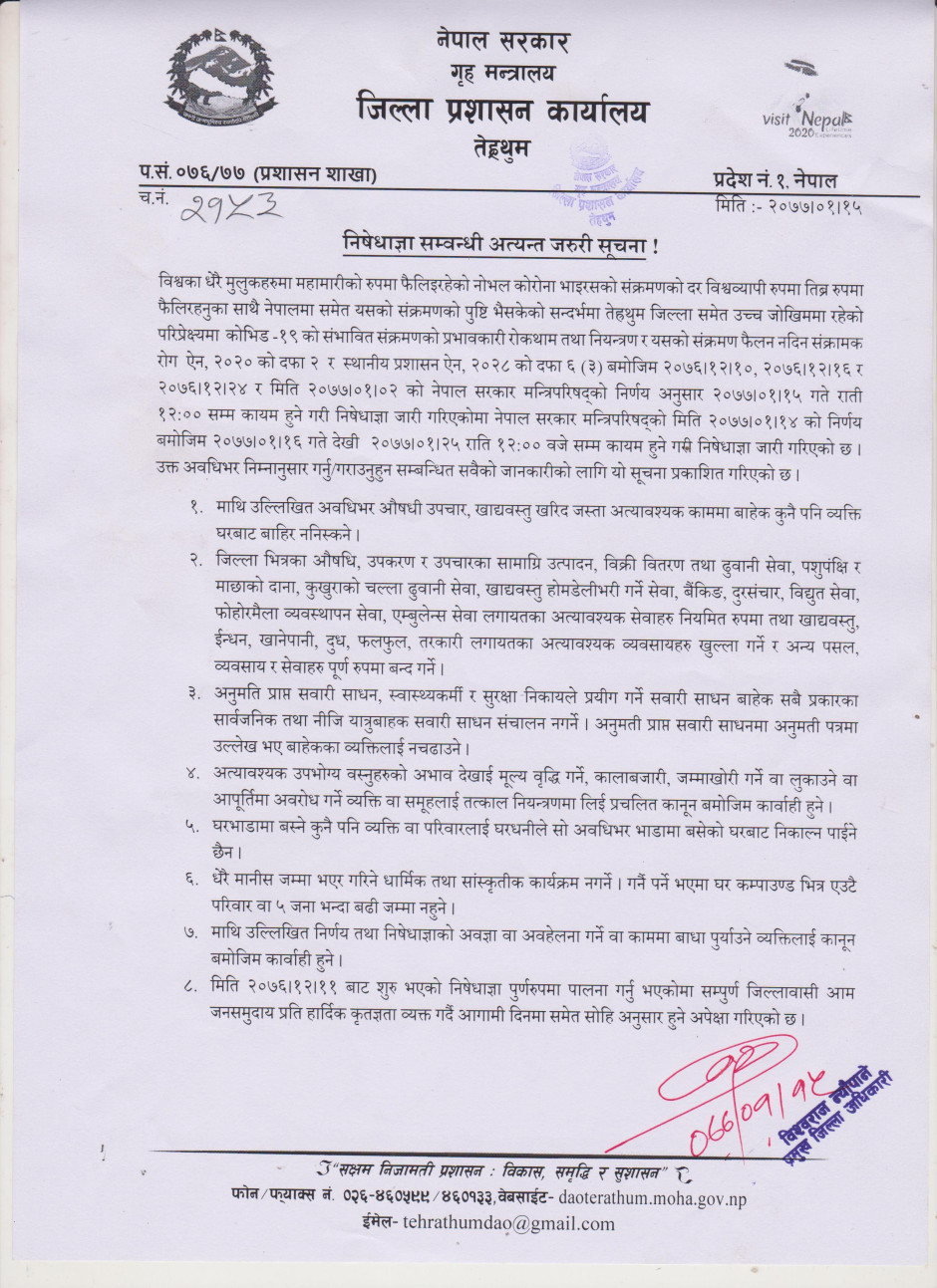 निषेधाज्ञा सम्वन्धी अत्यन्त जरुरी सुचना