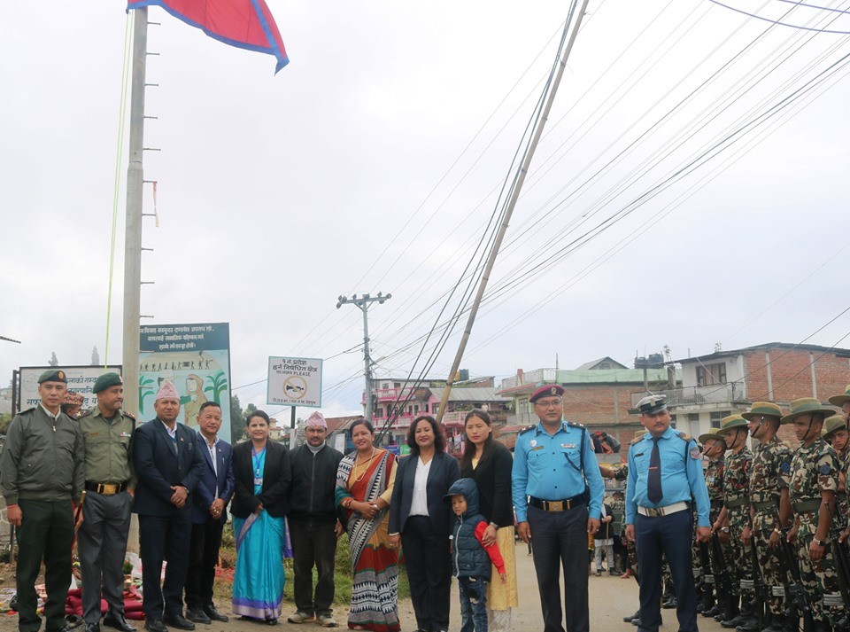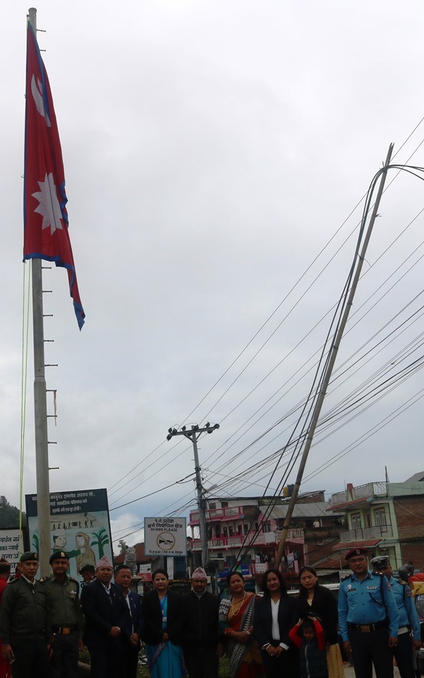 प्रदेश सरकार मुख्यमन्त्री तथा मन्त्रीपरिषद्को कार्यालय प्रदेश नं. १ बाट संविधान दिवस २०७६ का अवसरमा प्राप्त ठूलो आकारको झण्डा आज मिति २०७६।०६।१३ गते वडादशैको साईतमा तेह्रथुम जिल्ला, म्याङलुङ नगरपालिका बसपार्क नजिकमा स्थायी प्रबन्ध गरी झण्डा फहराईयो ।