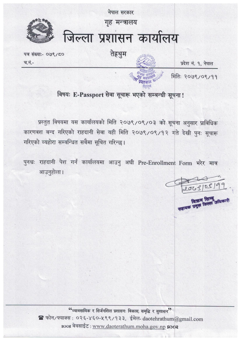 राहदानी सेवा पुनः सूचारू भएको सम्बन्धी सूचना।।।