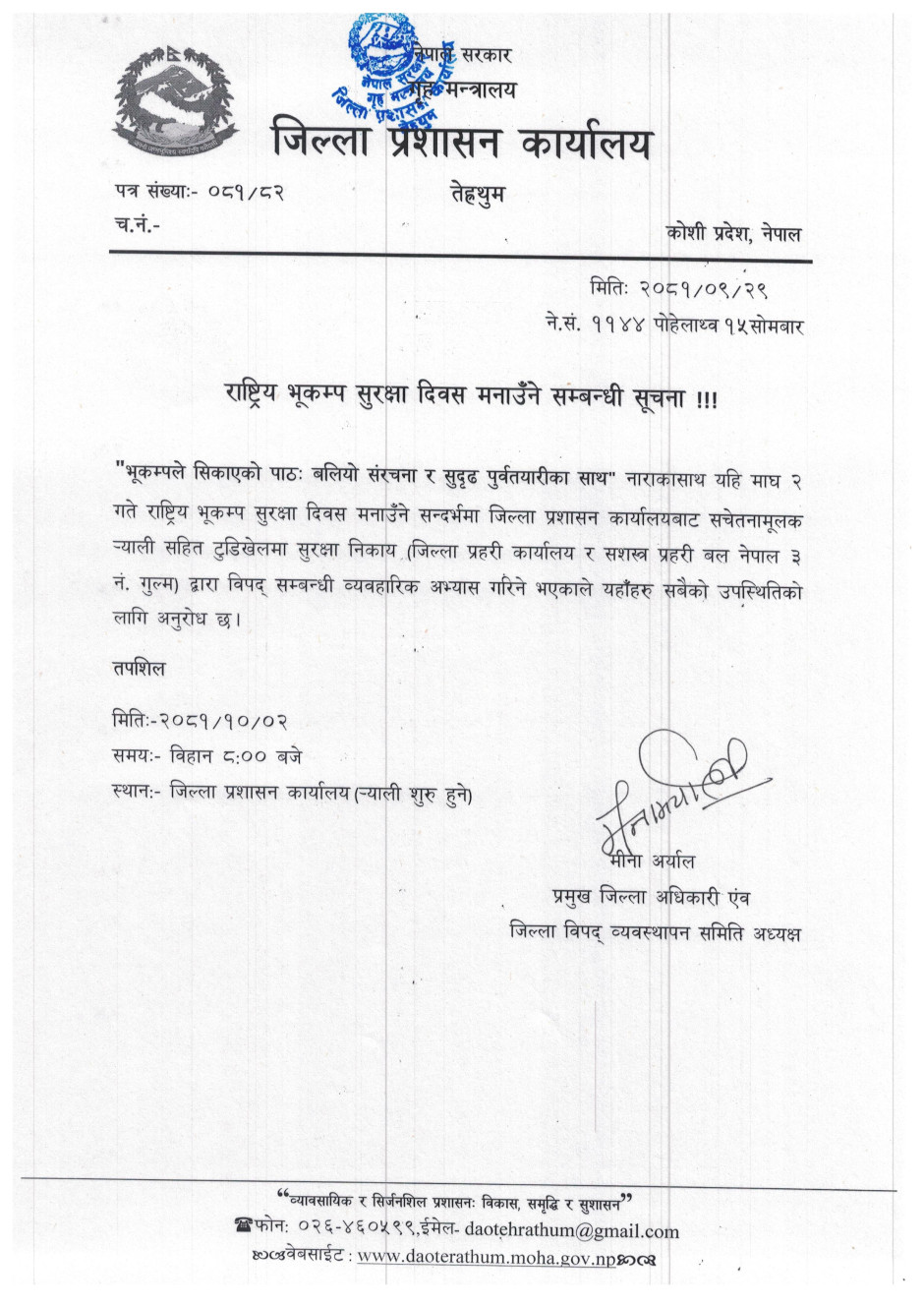 राष्ट्रिय भूकम्प सुरक्षा दिवस मनाउँने सम्बन्धी सूचना !!!