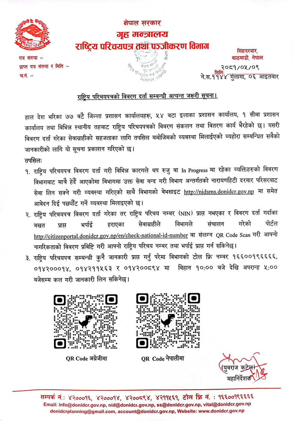 राष्ट्रिय परिचयपत्रको विवरण दर्ता सम्बन्धी अत्यन्त जरूरी सूचना!!!