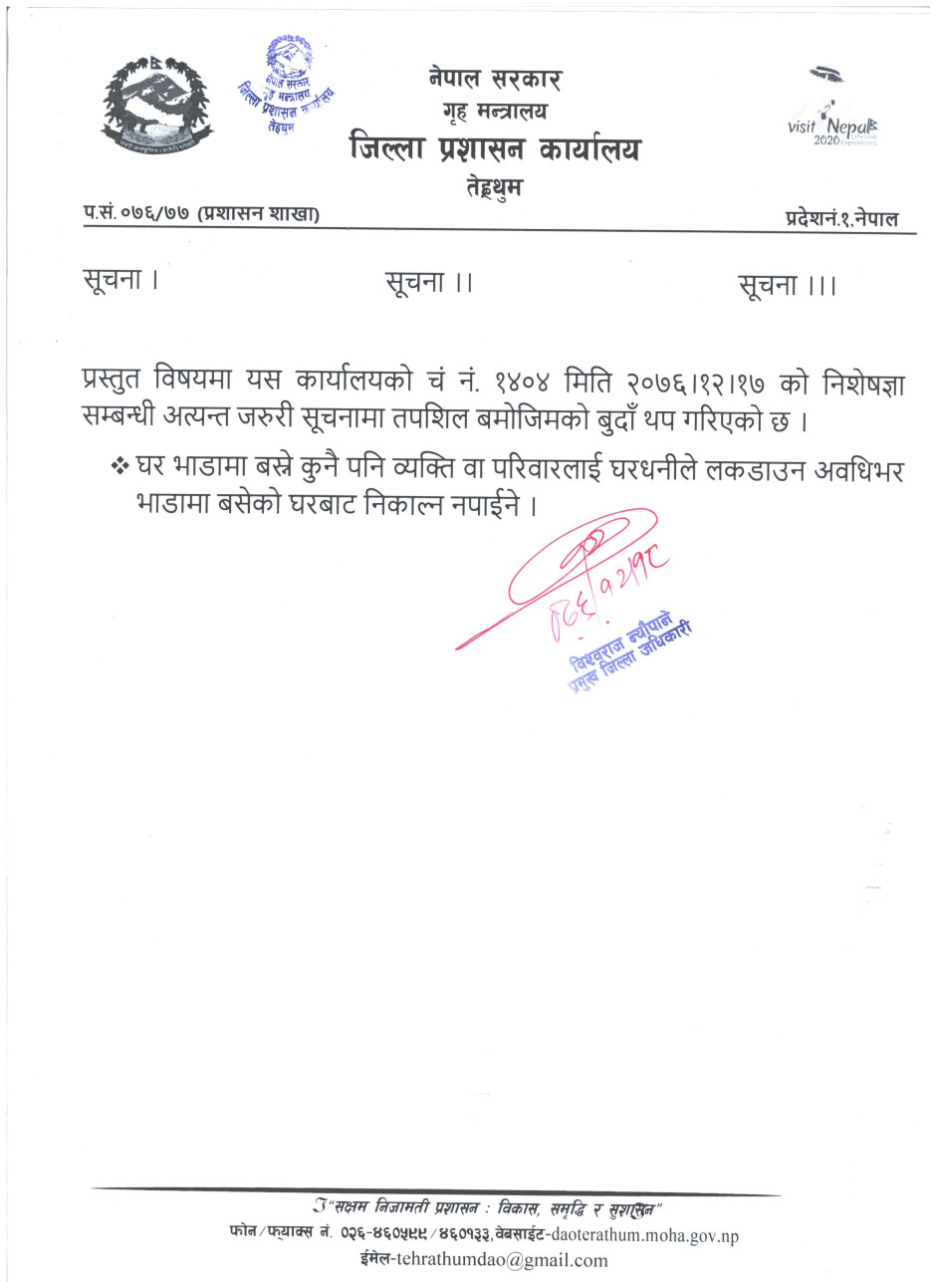 © सर्वाधिकार सुरक्षित जिल्ला प्रशासन कार्यालय, तेह्रथुम