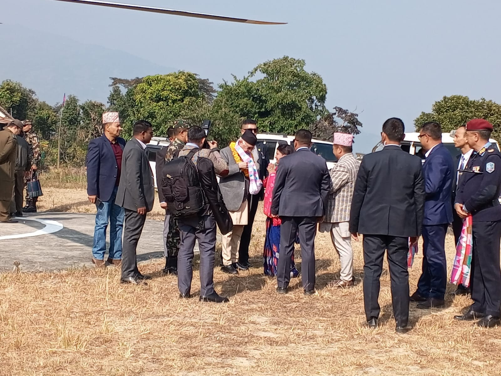 मिति २०८१/०८/२६ गते सम्माननीय प्रधानमन्त्री के.पी शर्मा ओलीज्यूलाई तेह्रथुम जिल्लामा प्रमुख जिल्ला अधिकारीज्यू द्वारा स्वागत मिति २०८१/०८/२६ गते सम्माननीय प्रधानमन्त्री के.पी शर्मा ओलीज्यूलाई तेह्रथुम जिल्लामा प्रमुख जिल्ला अधिकारीज्यू द्वारा स्वागत