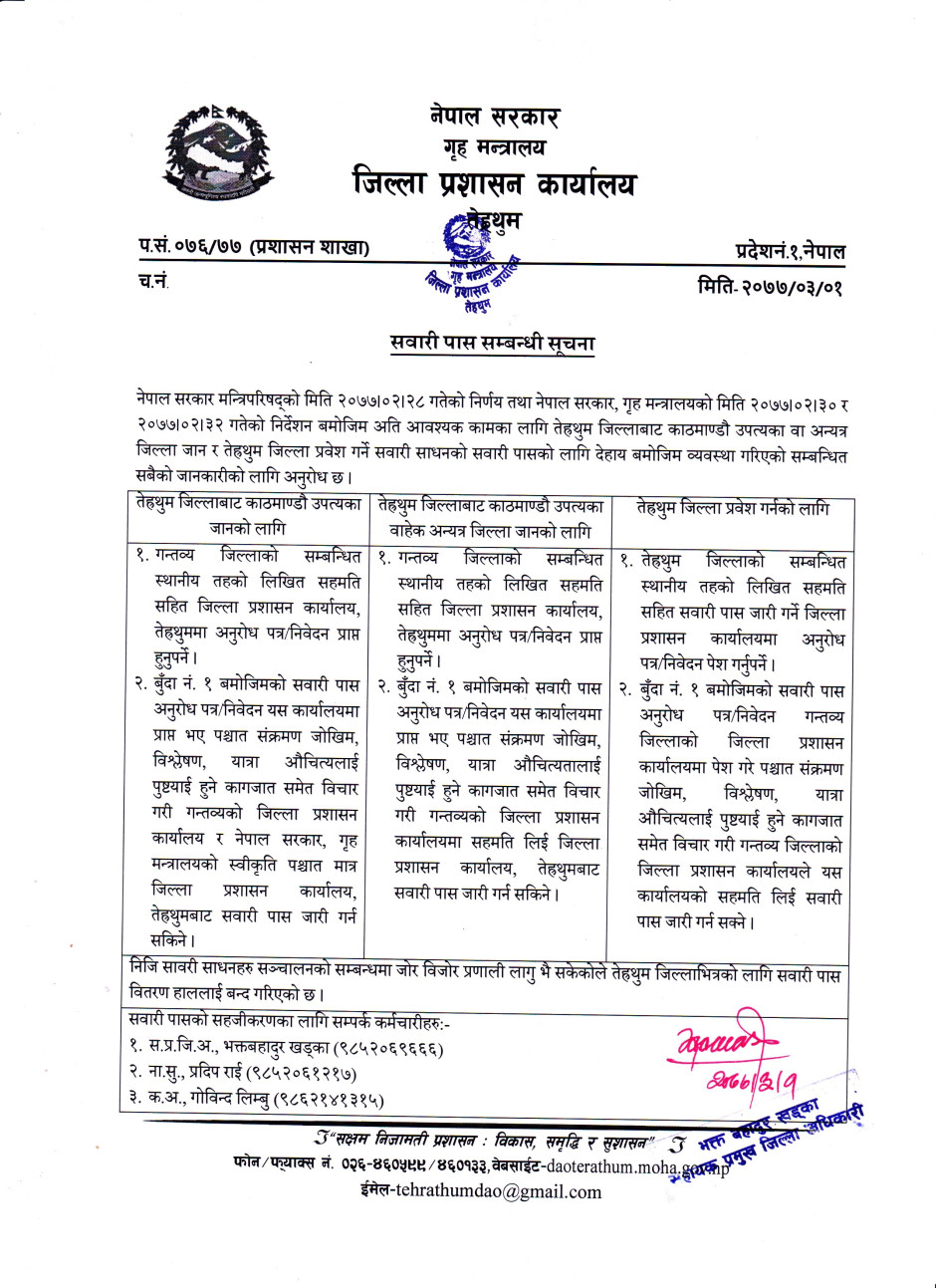 तस्बिर : सवारी पास सम्बन्धी सूचना ।