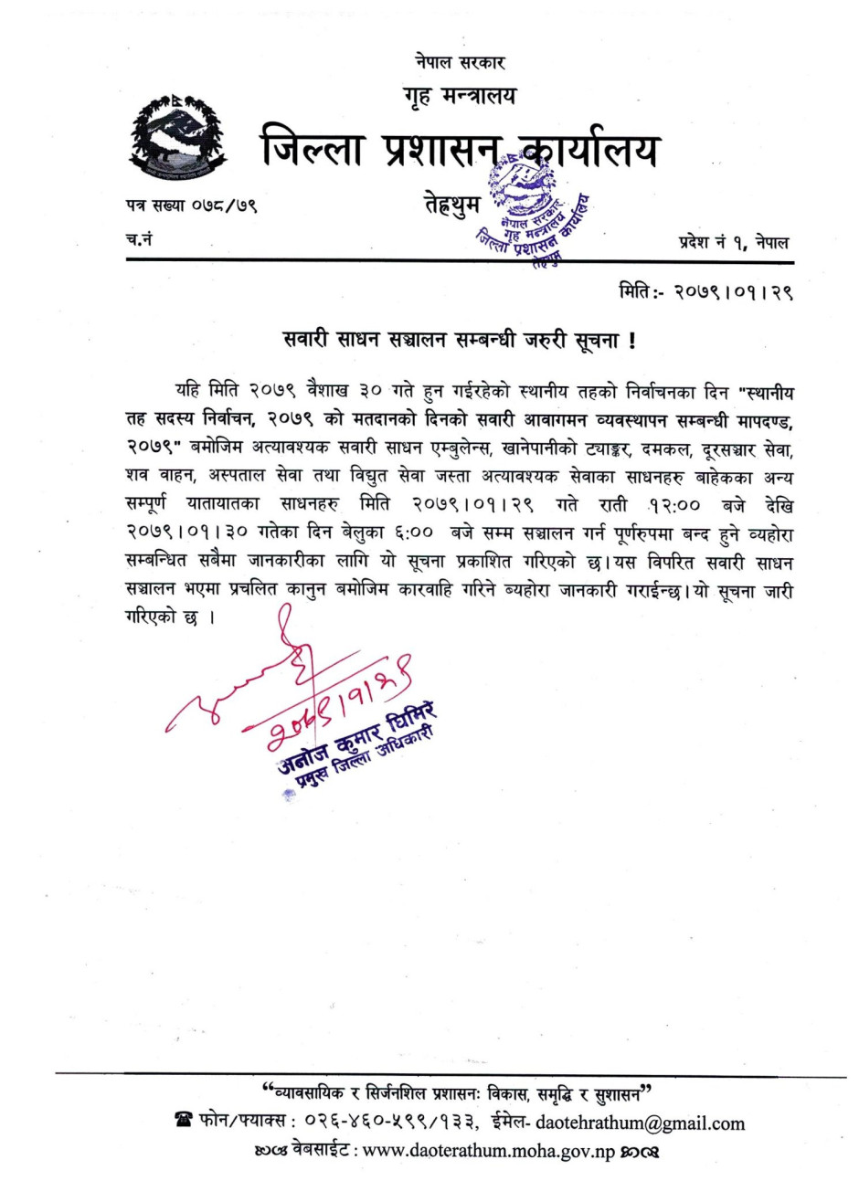 © सर्वाधिकार सुरक्षित जिल्ला प्रशासन कार्यालय, तेह्रथुम .