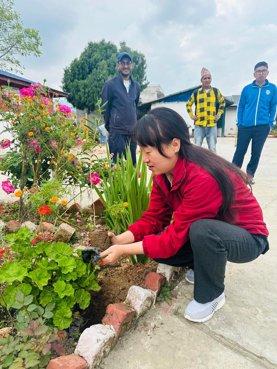 प्रमुख अनुसन्धान अधिकृत श्री सविना राईज्यूबाट कार्यालय परिसर सुशोभित कार्यको लागि वृक्षारोपण गरिदैः
