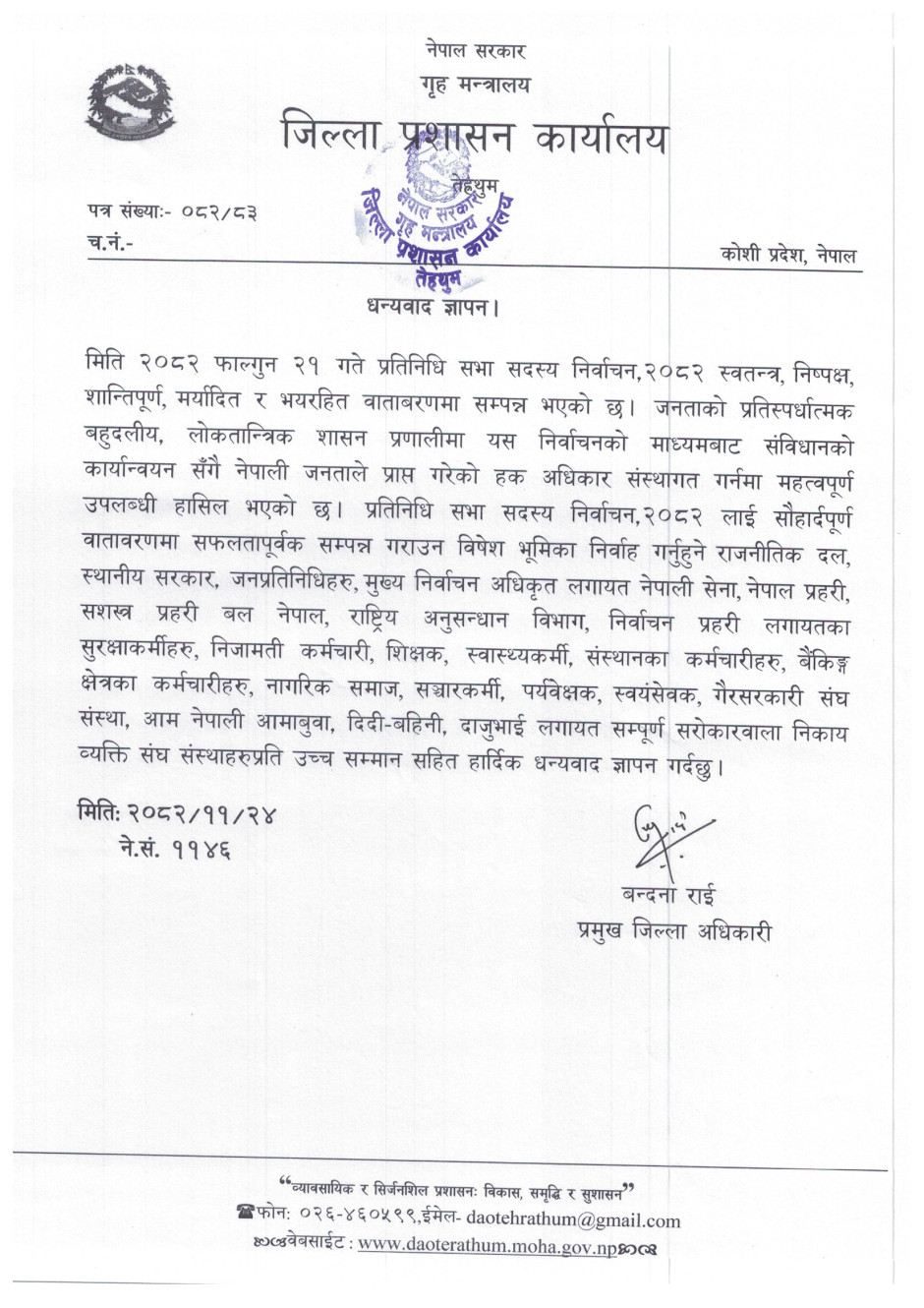 प्रतिनिधि सभा सदस्य निर्वाचन, २०८२ मा सहभागिताको लागि जिल्लावासीहरुमा अनुरोध !