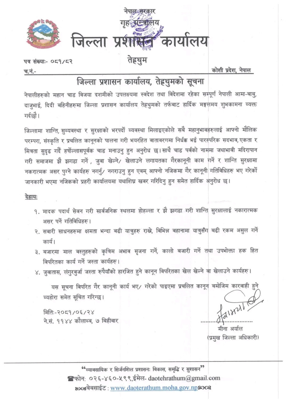 © सर्वाधिकार सुरक्षित जिल्ला प्रशासन कार्यालय, तेह्रथुम